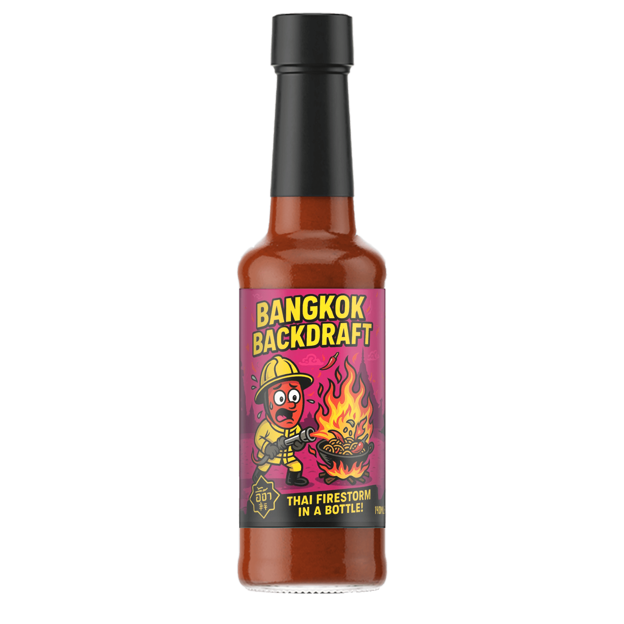 This fiery firefighter doesn’t put out flames — it starts them. A tongue-torching mix of Thai chillies and spice, Bangkok Backdraft will have you breathing dragon fire and smiling while you do it. Ideal for stir-fries, noodles, or revenge cooking. Keep calm, grab milk, and enjoy the burn.