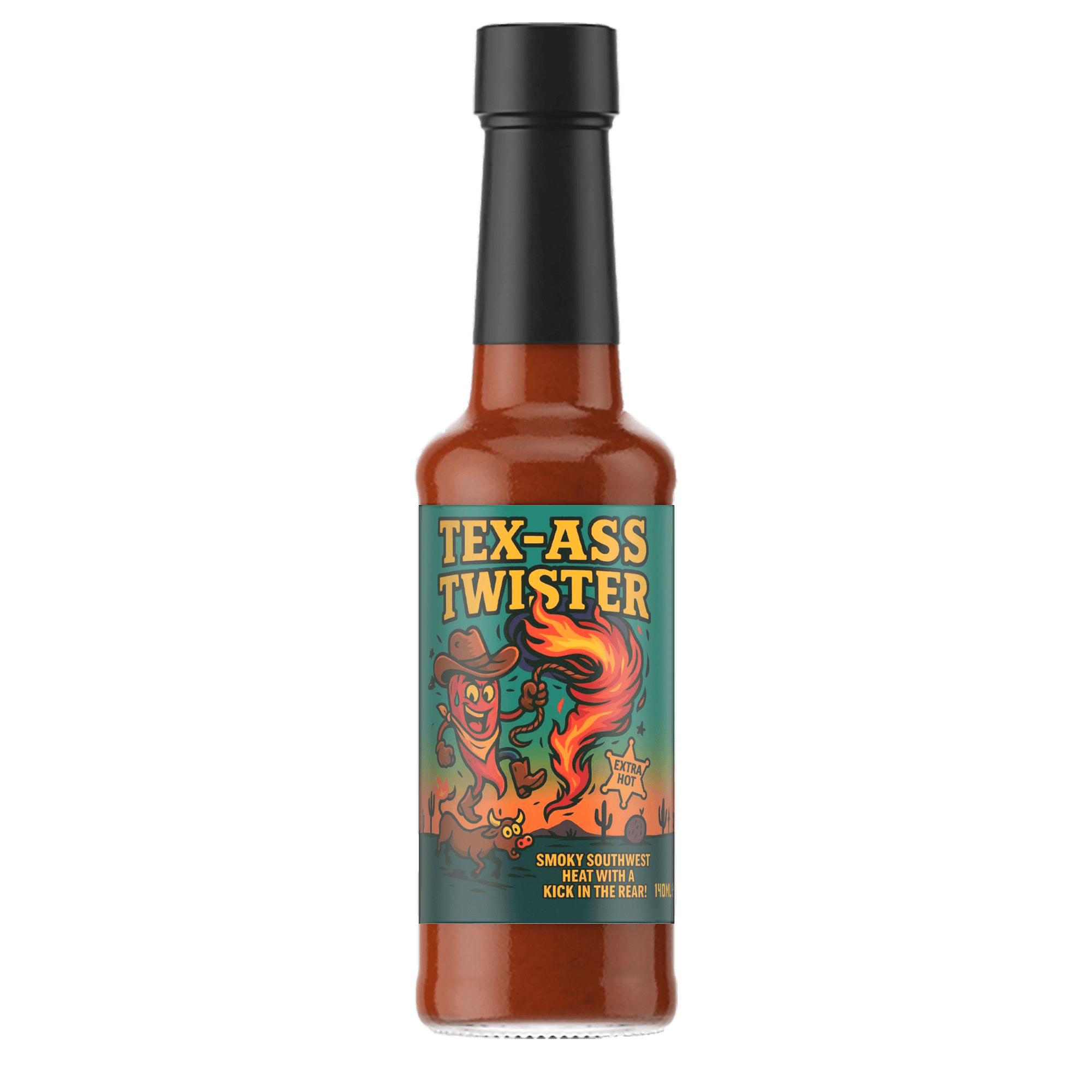 Yeehaw! Strap in, partner — this ain’t your average barbecue sauce. Tex-Ass Twister wrangles smoky chipotle heat with a wild southern burn that’ll lasso your taste buds and set your rear ablaze. Best served with denim, danger, and a cold drink nearby. Saddle up — the rodeo starts in your mouth.
